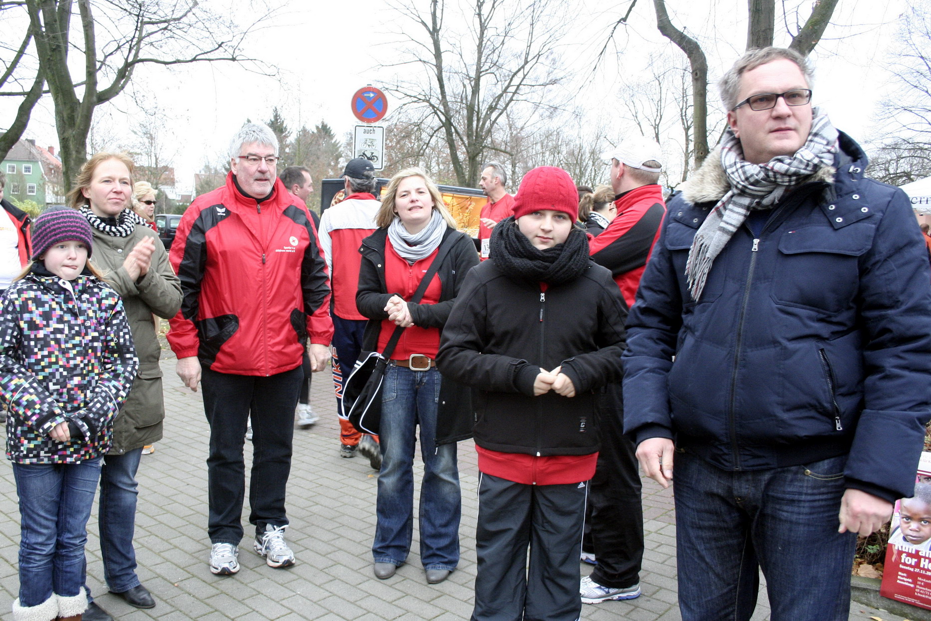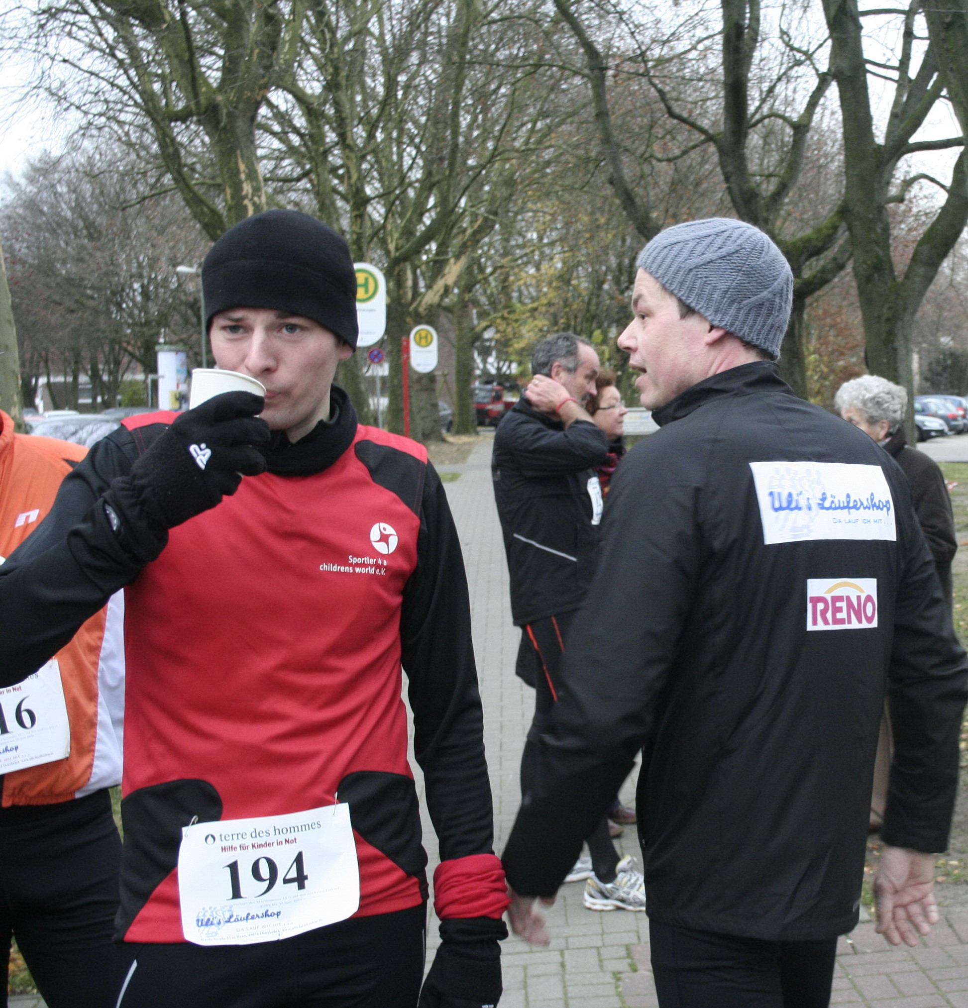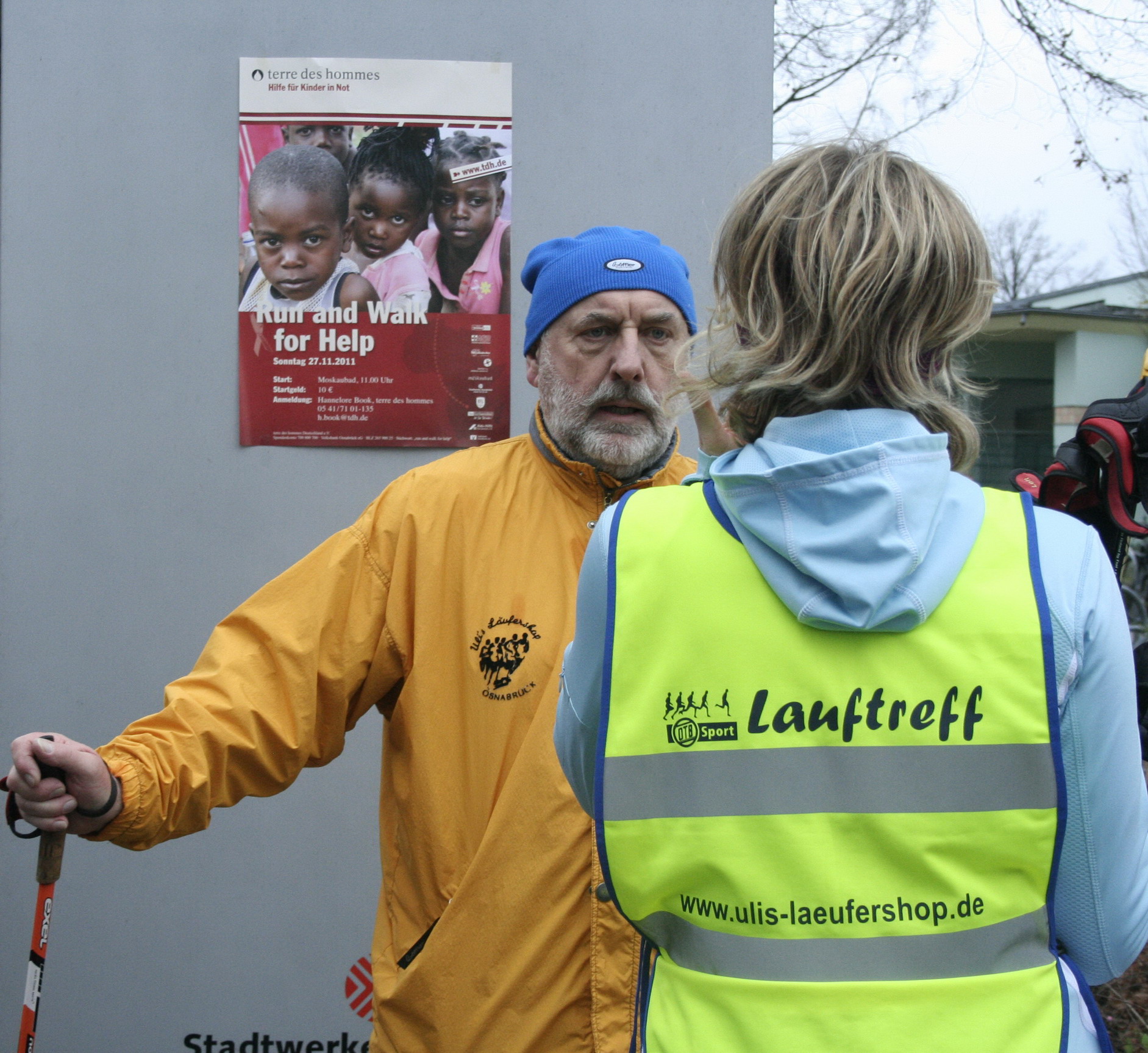 Am ersten Advent, 27.11.2011, rief terre des hommes zum alljährlichen Run and walk for help auf. Traditionell am Sonntag vor dem Weltaidstag (1. Dezember) findet dieser Lauf statt, dessen Spendeneingänge für Aidsprojekte des Kinderhilfswerks bestimmt sind. In diesem Jahr wurde zudem unserer 1. Vorsitzender, John McGurk, der Öffentlichkeit als erster regionaler Botschafter von terre des hommes vorgestellt. Über 1.200 Euro wurden in diesem Jahr erlaufen und erwalkt. Wind und kühle Temperaturen konnten auch die SchülerInnen des Gymnasiums “In der Wüste” nicht vom mitmachen abhalten. Bereits zum dritten Mal in Folge sicherten sie sich den Wanderpokal, den von Uli Rath (Uli`s Läufershop) gestifteten Preis, der an die Schule mit den meisten gelaufenen Kilometer vergeben wird. Auf ein Wiedersehen beim 11. Run and walk for help im November 2012!