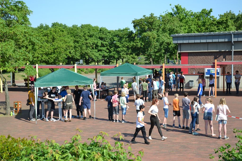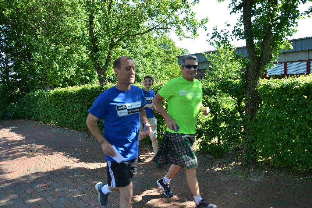 Beim Sponsorenlauf der IGS Bramsche für „SOS Kinderdorf“ und die geplanten Kleinspielfelder auf dem Schulgelände waren alle mit vollem Einsatz dabei. Mit insgesamt 3222 Runden sind die Läufer ungefähr die Strecke bis zur Partnerschule in Barcelona gelaufen! 1450 km sind von den Schülerinnen und Schülern sowie den Gastläufern absolviert worden. Bei herrlichem Wetter gab Landtagsabgeordneter Guido Pott den Startschuss. John Mc Gurk, der die 10%ige Spende der erlaufenen Summe an SOS Kinderdorf weitergibt, war im traditionellen Kilt dabei. Joe Enochs unterstützte das Courage-Team und auch Bürgermeister Heiner Pahlmann drehte als passionierter Läufer seine Runden. Eltern, Lehrer, Gastläufer und auch Großeltern unterstützten das Engagement der Schülerinnen und Schüler.